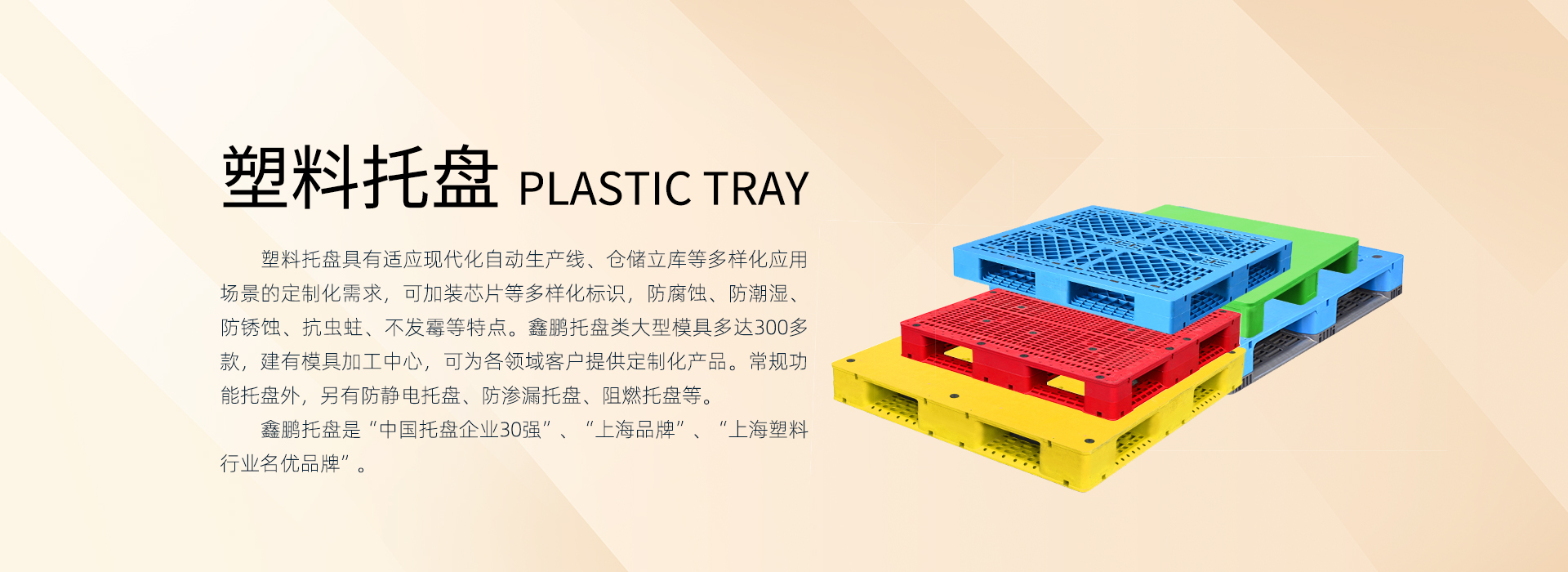 上海鑫鵬塑料制品有限公司作為集團(tuán)最早成立的企業(yè),是上海市高新技術(shù)企業(yè),上海市專精特新企業(yè)、上海市小巨人先進(jìn)企業(yè)。公司配有專業(yè)的高分子材料和產(chǎn)品研發(fā)技術(shù)團(tuán)隊,擁有7項發(fā)明專利,66項實用新型專利;完善的ISO9001質(zhì)量管理體系、ISO14001環(huán)境管理體系及ISO45001職業(yè)健康與安全管理體系為公司及客戶提供了有力的質(zhì)量保證與安全保障。30多年行業(yè)積累,現(xiàn)集團(tuán)公司整體擁有90多臺160噸-4000噸注塑設(shè)備,建有模具生產(chǎn)制造中心、原材料和產(chǎn)品測試中心,配備全套先進(jìn)的產(chǎn)品檢驗儀器及各種輔助設(shè)備。年產(chǎn)塑料制品1800萬件,改性塑料新材料15萬噸。我們的產(chǎn)品廣泛應(yīng)用于食品飲料、物流倉儲、生鮮蔬果、煙酒、電商、化工、醫(yī)藥、紙業(yè)、汽車、環(huán)衛(wèi)等行業(yè)領(lǐng)域,可根據(jù)不同行業(yè)客戶應(yīng)用場景定制化產(chǎn)品。行業(yè)經(jīng)驗